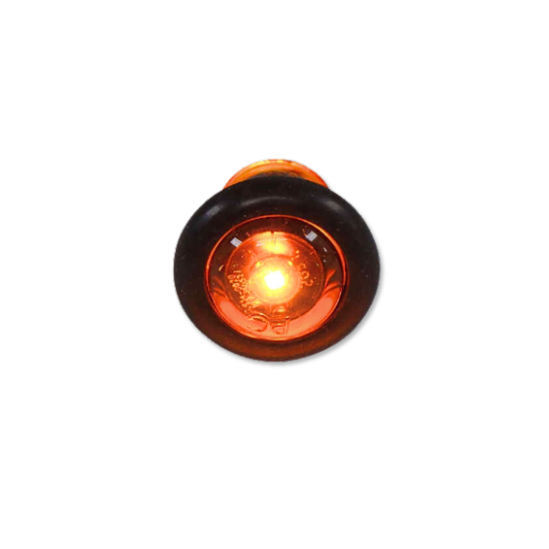 This compact 3/4″ amber LED light is a versatile, high-visibility solution for clearance, marker, or auxiliary lighting on trailers and trucks. The light features a bright red LED within a sealed, weatherproof housing, ensuring durability in harsh conditions. It is designed for easy installation into a 3/4″ hole and includes pre-installed wire leads for a simple 2-wire connection. When properly mounted, this DOT-compliant light is ideal for tight spaces requiring reliable illumination.